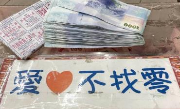 神秘客將6萬元現金裝在廣告紙內,投入捐款箱。(記者湯世名攝)