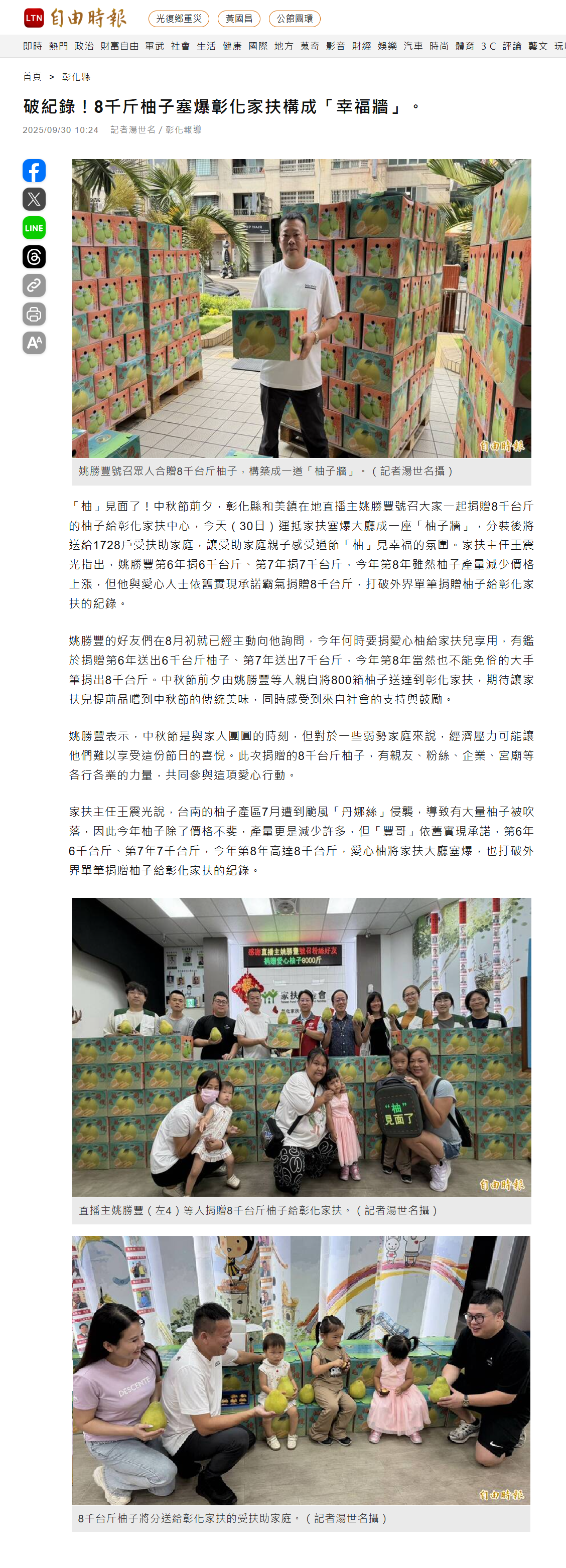 破紀錄!8千斤柚子塞爆彰化家扶構成「幸福牆」。