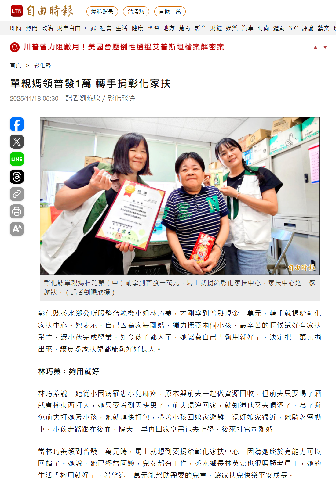 彰化在地企業捐500箱點心飲品 讓家扶兒免挨餓等父母回家