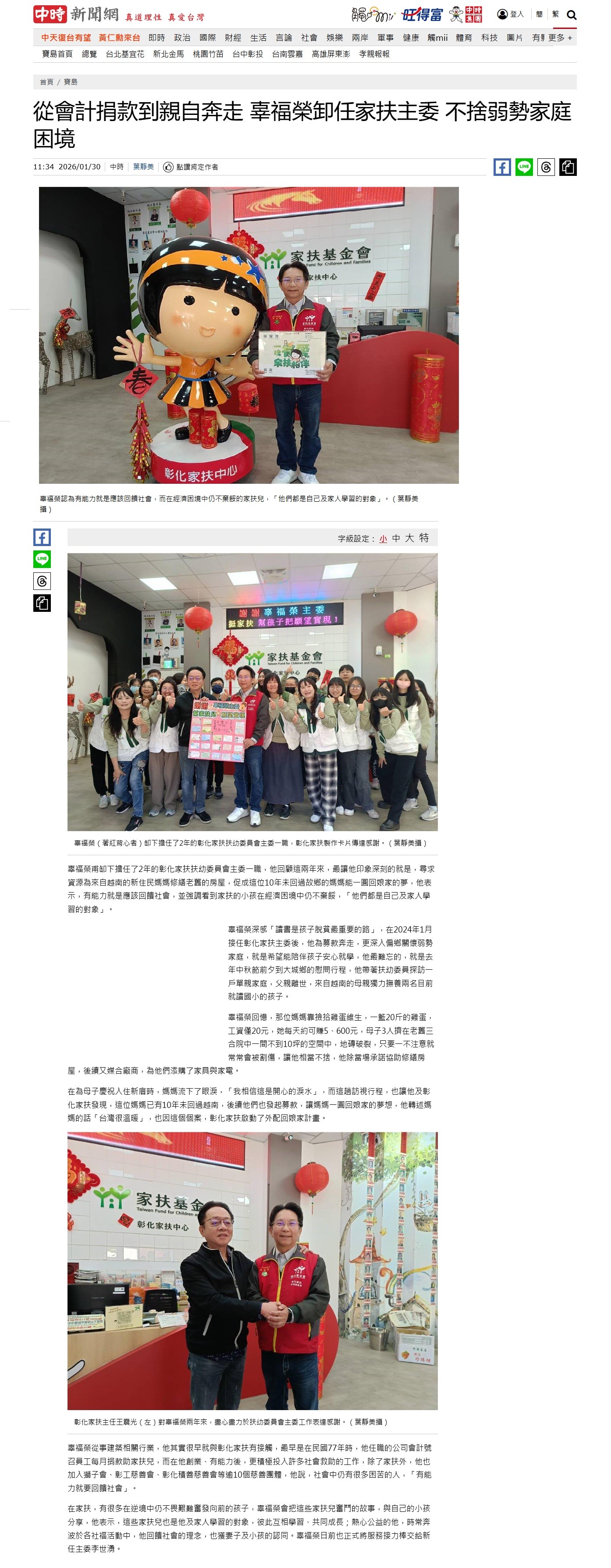 從會計捐款到親自奔走 辜福榮卸任家扶主委 不捨弱勢家庭困境