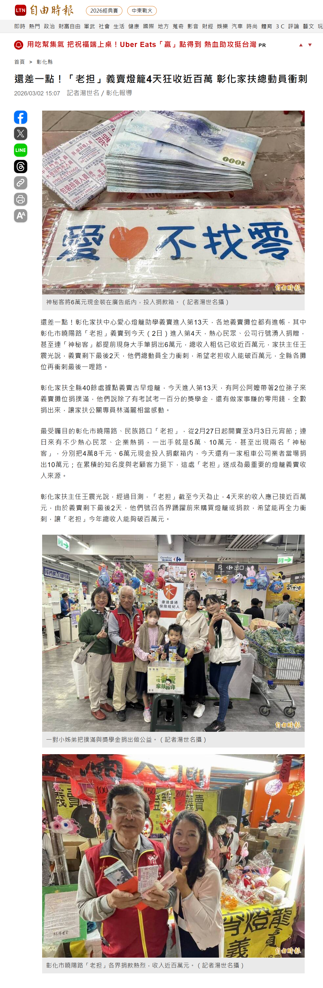 還差一點!「老担」義賣燈籠4天狂收近百萬 彰化家扶總動員衝刺