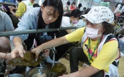 嘉義家扶中心6月2日於中心戶外廣場舉辦「粽葉飄香傳溫情」活動,共28戶86名親子參加,端午節前夕,在社會大眾的溫暖支持下,帶領家長與子女一起學習綁粽子,共包出1200顆肉粽,兒童也手作紙龍舟...