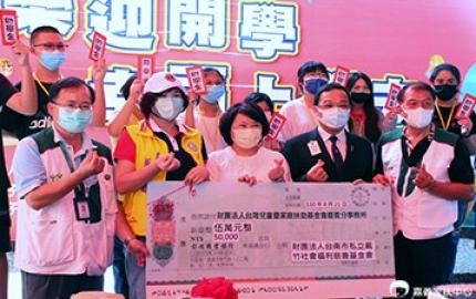 嘉義家扶中心於8月21日接受「財團法人台南市私立戴竹社會福利慈善 基金會」捐贈嘉義地區弱勢學子50 輛腳踏車、安全帽及$50,000 元助學金,同 時有國際獅子會300-D1區第三專區第5 分區、嘉義獅子...