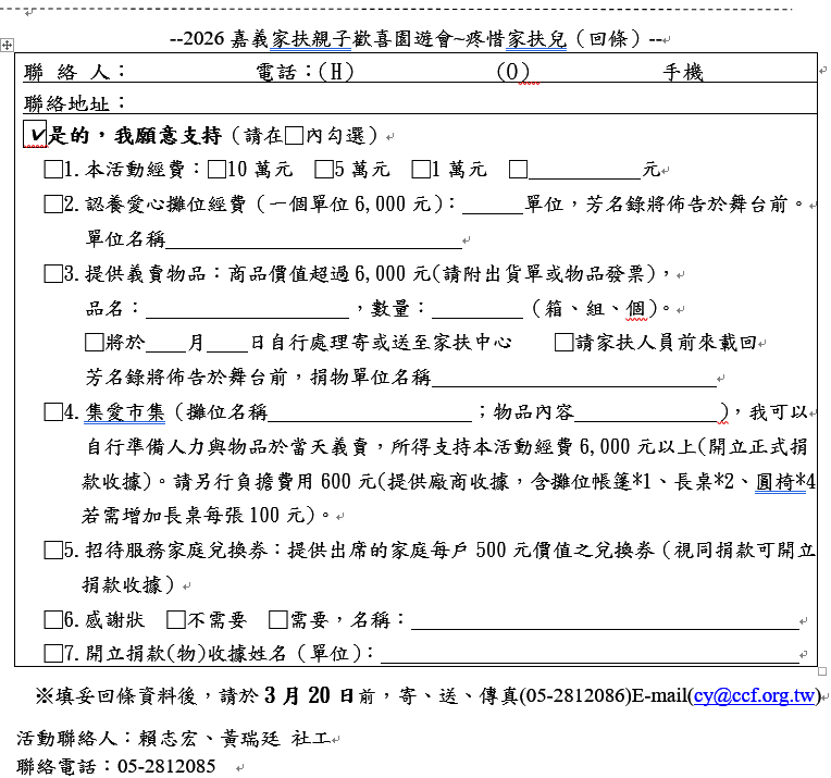 2026嘉義家扶「愛要大聲說出來」親子歡喜園遊會敬愛的家扶人平安: