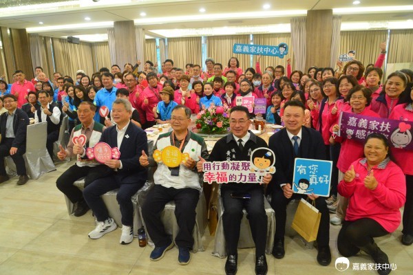 嘉義家扶中心於1月11日假嘉義市鈺通大飯店舉辦「2026年扶幼委員會授證暨義工幹部交接表揚典禮」。典禮中頒發扶幼委員及義工年度聘書,並表揚59名績優義工。去年家扶義工團隊共計投入1,227人次、累積服務時數達5,832.5小時,展現驚人的扶幼能量。當日包括嘉義市副市長林瑞彥、社會處長李思賢、嘉義縣社會局長科長李淑韻、市議員鄭光宏、黃敏修、傅大偉等代表亦親臨會場,向長期奉獻的家扶人致意。現場在鈺通營造黃國芳董事長連任主委與三隊義工隊長的帶領下,與全體義工宣誓將持續讓愛循環,守護嘉義弱勢兒少。