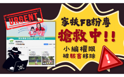 《家扶基金會》FB粉專遭盜用,請民眾多加留意粉專散播之消息及私訊!(非北台中家扶中心粉專遭駭客入侵)