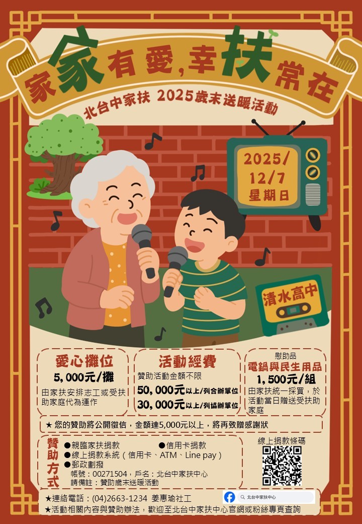 北台中家扶將於12月7日舉辦歲末送暖活動