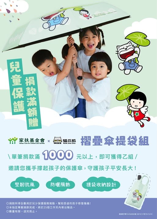 即可獲得<家扶x貓爪抓>摺疊傘提袋乙組