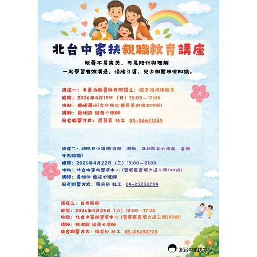 【北台中家扶親職教育講座|一起陪孩子好好長大】