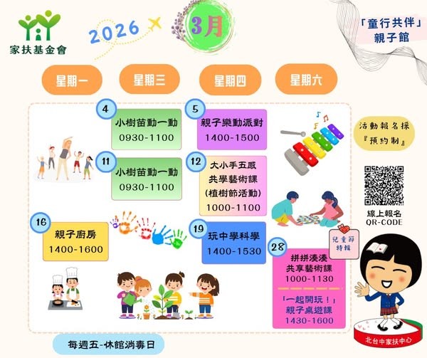 【童行共伴】親子館~2026 年 3 月份的課表來嘍