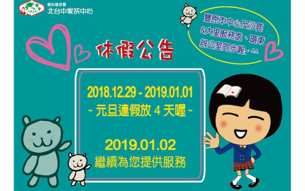 🎵 2018/12/29(六)~2019/01/01(二) ➰元旦連假休 4 天喔~😉