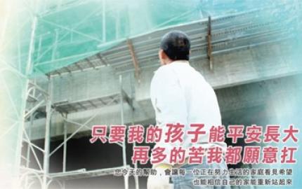 「我們做模板工作的,有時候要等水泥乾才能進行下一階段的工程,空窗期我就會到其他工地找工作機會,前幾年我因為腦中風緊急開刀,身體休養了一段時間,但我最擔心的,還是家裡很需要愛與關懷的...