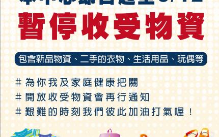 即日起至 6/12 #暫停收受各式物資及食品