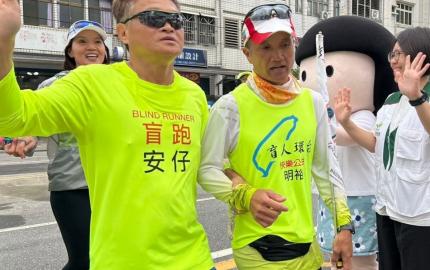 台灣盲人環台為公益而跑 六度跑進花蓮家扶 傳遞希望聖火為愛募年菜