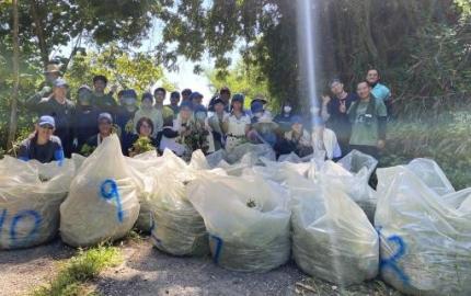綠癌「蔓」延危機! 花蓮家扶攜20名大專高中生為環境盡心力 挽袖清出近250公斤小花蔓澤蘭