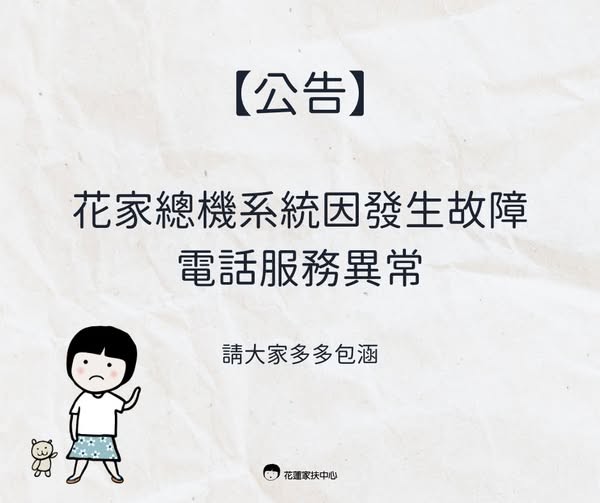 #花蓮家扶 #服務不中斷 #電話主機維修中