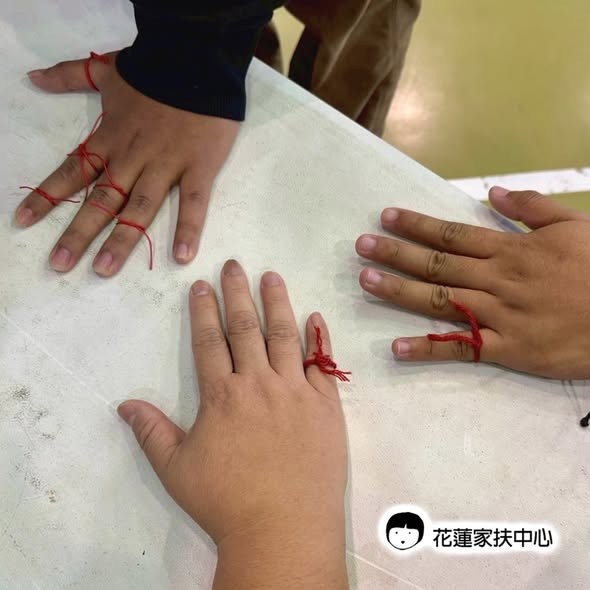 那一條條繫在手指上的紅繩,連結了服務隊的大哥哥大姊姊、社工老師、督導,還有孩子們純真的心。大家約定好了: