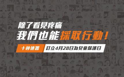 一同連署成立428兒保日,讓受虐兒多一份被關注的希望 ❤️❤️每7分鐘就有一件疑似兒虐事件發生!推動「4月28日兒童保護日」,我們需要更多護童者聯盟來參與!Go!