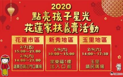 2020 / 02 / 052/7-2/8助學義賣邀您參加今年特別在2/7-2/8連續兩天,於新秀地區、花蓮市以及玉里地區三地,聯合舉辦「點亮孩子星光,花蓮家扶助學義賣活動」,花蓮吉安地區則與花蓮市公所及遠東百貨合作舉辦現場將有許多超值好康的商... 了解更多