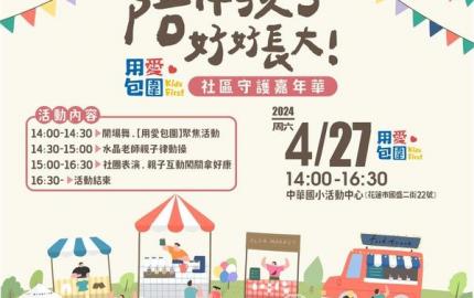 活動時間:2024.4.27(六) 14:00-17:00 活動地點:中華國小活動中心