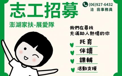 嘿!同學們,看過來 #招募學生志工 你好奇助人工作平常在做什麼嗎? 澎湖家扶歡迎正值學涯探索的你~ 加入 #澎湖家扶展愛志工隊 體驗助人所帶來的美好🌞 #助人一起來 #升學更加分 服務中帶你...