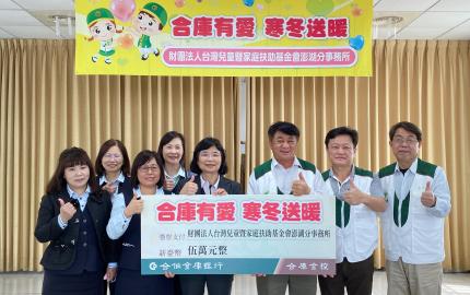 合作金庫銀行 持續關懷澎湖偏鄉離島貧困兒少曁家庭, 於3/3下午由南區區中心江謝美緣協理、黃淑卿組長,澎湖分行吳素鳳經理、 劉梅雀副理、李淑芬襄理及行員同仁親臨中心,捐贈扶幼捐款5萬元...
