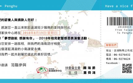 ☺敬愛的捐款人請留意 ⏳8月19日「夢想啟航 感謝有你~ 2018年相見歡暨感恩表演會」距離不到一個月囉!!由逆流小魚所安排的社區巡禮,已經蓄勢待發,誠摯地邀請關心澎湖囝仔的好朋友一同來參與。