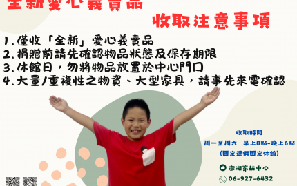 【#全新│愛心義賣品】開始收受囉👀 您家中有「用不到」的全新物品,不知該何去何從嗎? 如果有符合以下⬇ 「全新、有外包裝、未過期、功能正常、不用整理」 #即日起,歡迎您捐贈予澎湖家扶中心...