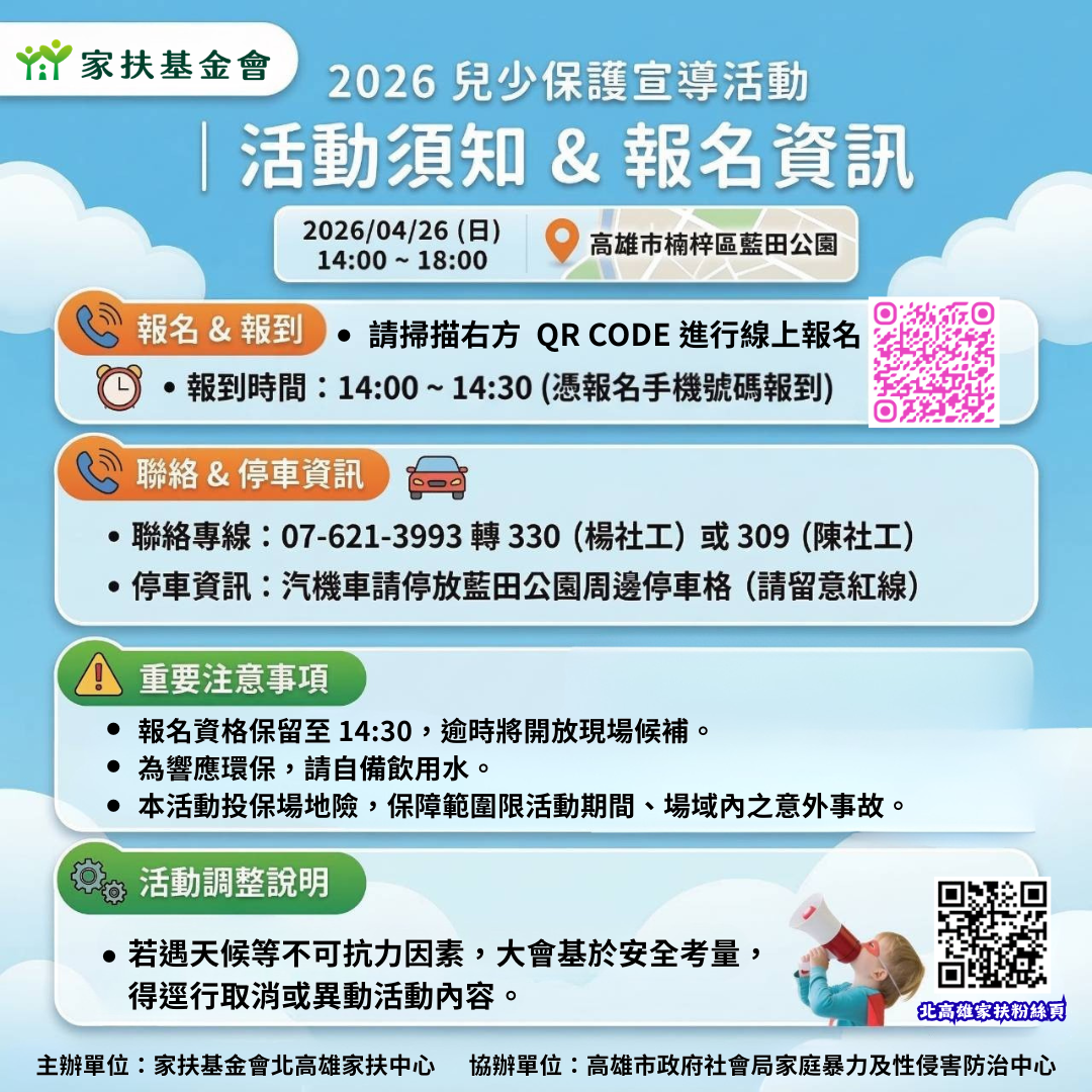 2026年兒少保護大型宣導活動報名開跑囉!
