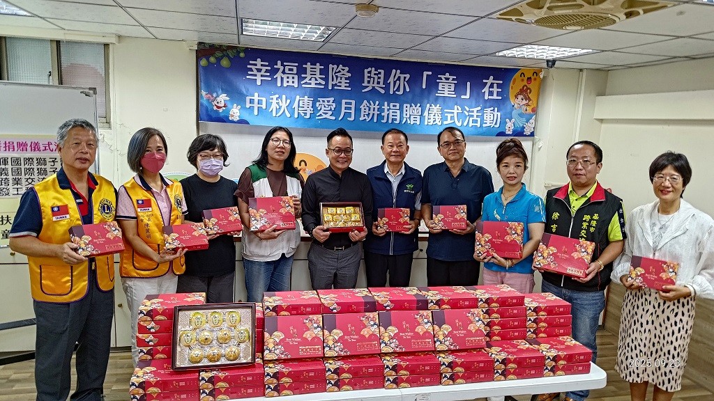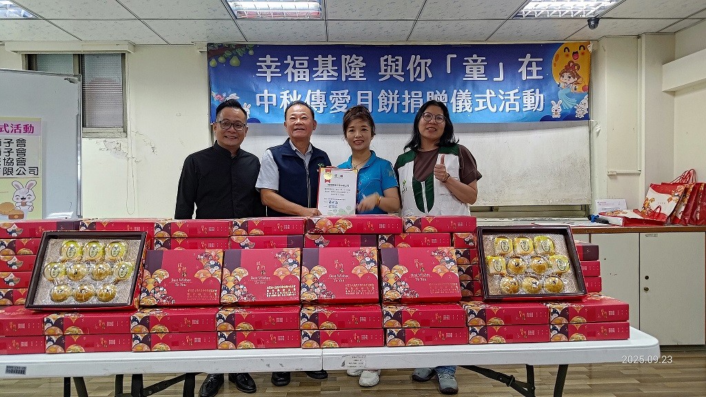 中秋節前夕,基隆市議會童子瑋議長號召各界善心人士,募集社會愛心資源,攜手基隆慈暉國際獅子會、基隆信義國際獅子會及基隆市跨業交流協會共同認購基隆市聾啞協會製作的愛心月餅共計3540顆,並轉贈予基隆家扶中心與主恩之家的兒童。特別在9月23日上午11點假基隆家扶中心三樓進行『幸福基隆.與你「童」在 ~中秋傳愛月餅捐贈記者會』,當天出席來賓有基隆市議會童子瑋議長、國際獅子會300A5區基隆慈暉會陳麗娟會長暨獅友們、國際獅子會300A5區基隆信義會高嘉和會長暨獅友們、基隆市跨業交流協會徐吉麟理事長暨會員們、鴻錡開發工程有限公司董事長莊庭華,基隆市聾啞協會黃勝明理事長與受贈單位基隆家扶中心扶幼主委簡世南、黄詩文主任、主恩之家劉月圓主任蒞臨現場,溫馨和樂。