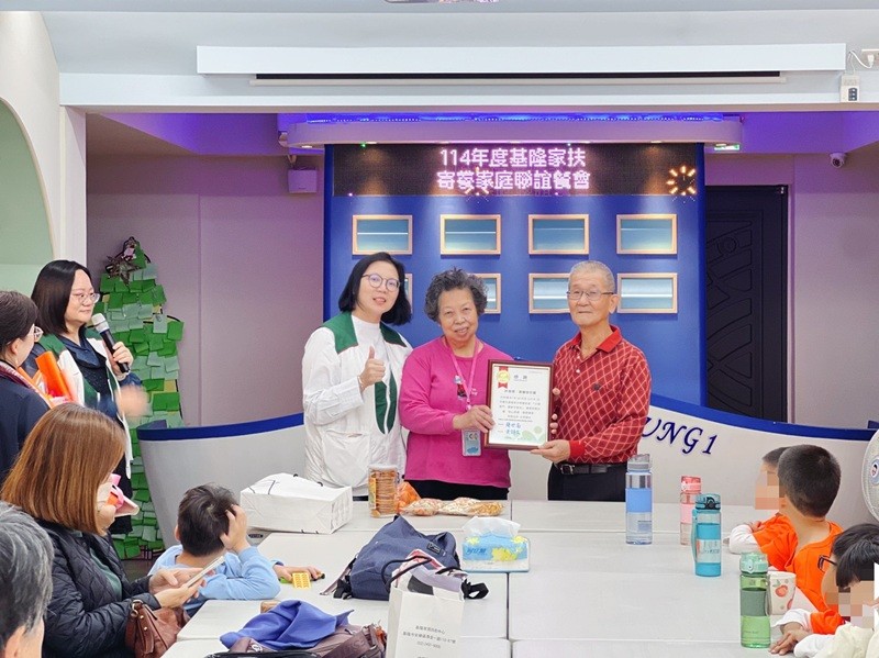 基隆家扶寄養家庭聯誼餐會於11月22日(六)在本中心汐止兒少館溫馨登場,共有10戶寄養家庭與寄養童齊聚,共度一個專屬於寄養家庭的小小聚會,今年活動特別安排了擔任寄養家庭超過十年的資深寄養家庭榮退儀式,新北市社會局兒少科劉倩如科長、家防中心許芝綺督導也親臨現場,向長期在第一線付出的寄養家庭致上最誠摯的感謝。