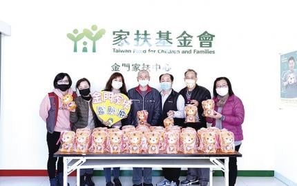 富康一村金門家扶中心的好鄰居,高齡長者黃登堅、許占儼夫婦,於春節前夕兩人昨前往家扶中心,將資源回收的款項捐出做為兒童扶幼館的建館經費,同時也攜來孫兒以一元銅板累積存滿竹筒的助學零錢...