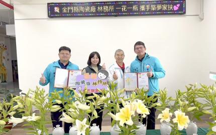金門縣陶瓷廠與金門縣林務所聯合發起「一花一瓶,築夢家扶」公益活動,捐贈百合花束與陶瓷瓶予金門家扶中心,並提供500組別具意義的百合花瓶組,贈送給指定捐款「獎助學金」專款的善心民眾,以...