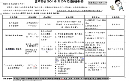 2018年10月活動通知單