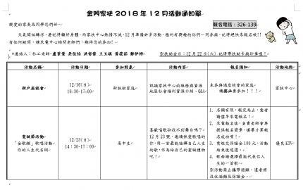 2018年12月活動通知單