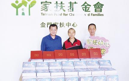 巨舟電腦公司負責人李鍾靈,由業務經理辛文盛及員工陪同,於端午節前夕攜帶一百盒的快篩試劑,親自開車快遞送往金門家扶中心。整批的快篩試劑由李鍾靈代表巨舟電腦公司,親手交給家扶中心主任李桂平,希望能儘早送給家扶中心的幼童使用。這批救命的快篩試劑,由李桂平代表接受,並向李鍾靈及其同仁,致上最深切的敬意和萬分的感謝之意。