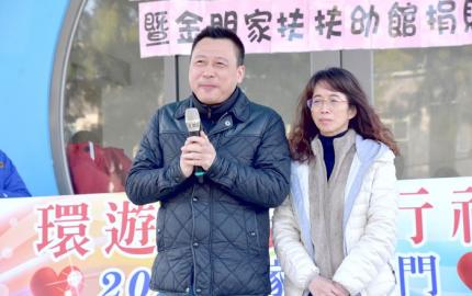 甫遭母喪之痛的旅台企業家環遊國際旅行社負責人李沃耀、陳素蘭伉儷,於16日率領公司同仁與眷屬近百人到達金門,以慈母之名義,慷慨解囊捐出新臺幣300萬元,做為金門家扶中心兒童扶幼館興建基金...