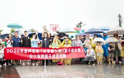 金門家扶中心428「大手牽小手×親子齊步走」兒童保護親子健走活動,昨日上午7時30分起假金湖鎮中正公園熱鬧登場,吸引逾300位親子無畏風雨同行,在健走、闖關、跳蚤市場,宣導吸收中防詐騙、兒少...