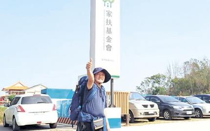 背著十三公斤大背包,已完成台灣二十個家扶中心用徒步環島愛心之旅的家扶自立青年魏安全,23日搭機來金也從機場徒步走到金門家扶中心,以一個中心捐款新台幣一萬元做善心的魏安全,最深感受就是...