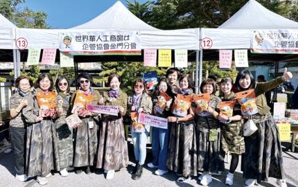 世界華人工商婦女企管協會金門分會昨(1)日由分會會長洪秀暖率領各理監事及會員,熱情參與金門家扶中心主辦的「家的希望·有您相扶」扶幼助學愛心園遊會,共襄盛舉愛心義賣活動。