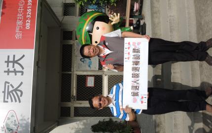 風獅爺童書館館長郭金堡於12/3早上10:00來到金門家扶中心,將此次選舉競選費用補貼的補助款之一半,捐給家扶中心做為支持此次寒冬送暖扶幼助學園遊會籌措不足的款項。