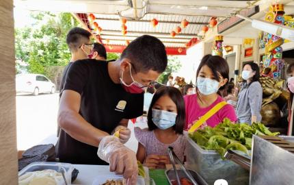 (哇!是黑色的漢堡耶)。(哇!這牛肉漢堡好可口喔!)。(哇!變臉怎麼變得這麼快) 8/15早上恆春鎮南代天府廣場前40個家扶小朋友頻頻發出讚嘆聲。這裡有一連三天的愛心漢堡販售活動,活動發起人陳韋強...