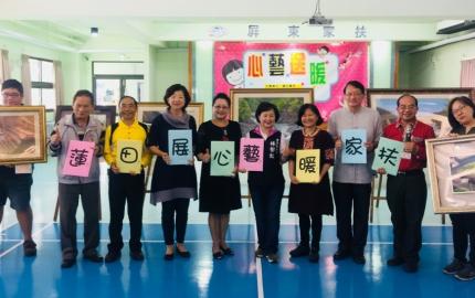 由鳳新高中退休美術老師傅蓮芬老師指導的『蓮田畫室』,3月17日假屏東家庭扶助中心潮州服務處三樓大禮堂展開為期2週的『心藝送暖』義賣畫展,現場展出油畫、水彩、水墨、紙粘土畫作、陶藝品、轉...