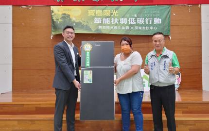 寶島陽光再生能源集團6月9日假屏東家扶中心四樓禮堂,辦理『節能扶弱』低碳行動,由卓國良執行長代表捐贈45萬計畫經費,購買20台一級節能省電冰箱,協助20戶受扶家庭汰換老舊冰箱,幫家庭節能、...