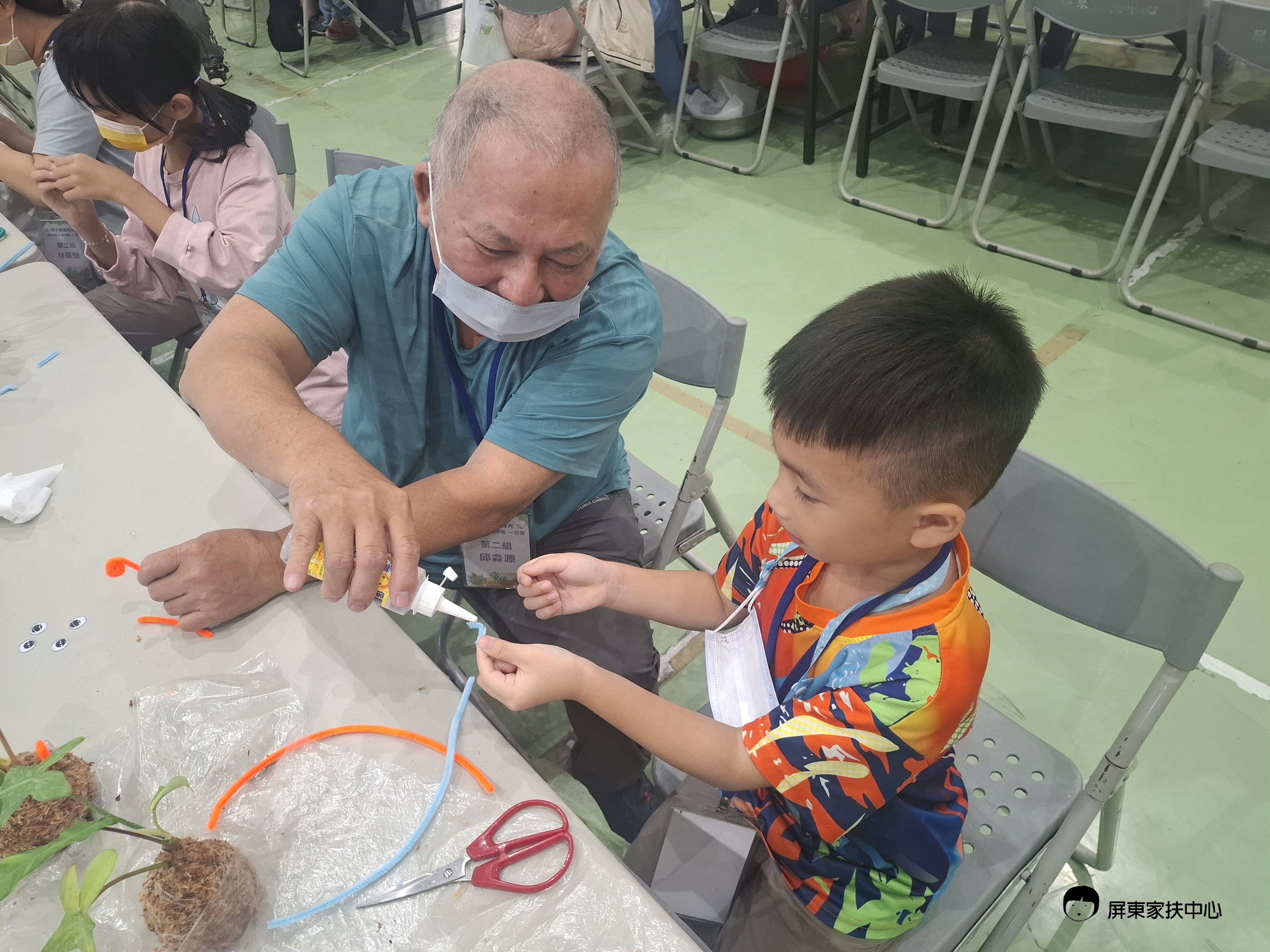活動結合自然療癒與創意手作元素,由財團法人彩色盤教育基金會的王雅雯心理師帶領「水苔植物親子課程」,透過捏塑、綁繩與組合過程,讓家長與孩子在專注與心靈放鬆中體驗合作的樂趣。參與的玉米媽媽表示,因為經濟因素讓母子長期處於高壓狀態,這次課程讓媽媽能靜下來陪小恩一起創作,「看著小恩小心翼翼地捏著苔球、擺放植物、教導媽媽綁水苔球,認真與專注的神情讓媽媽很感動,也讓媽媽重新感受到親子互動的溫度與心靈的平靜。」;獨自照顧小天10幾年的爺爺,是活動中唯一的一戶男性家長,表示「看到小天開心做水苔球的模樣,重新體會陪伴的快樂與成就感。」