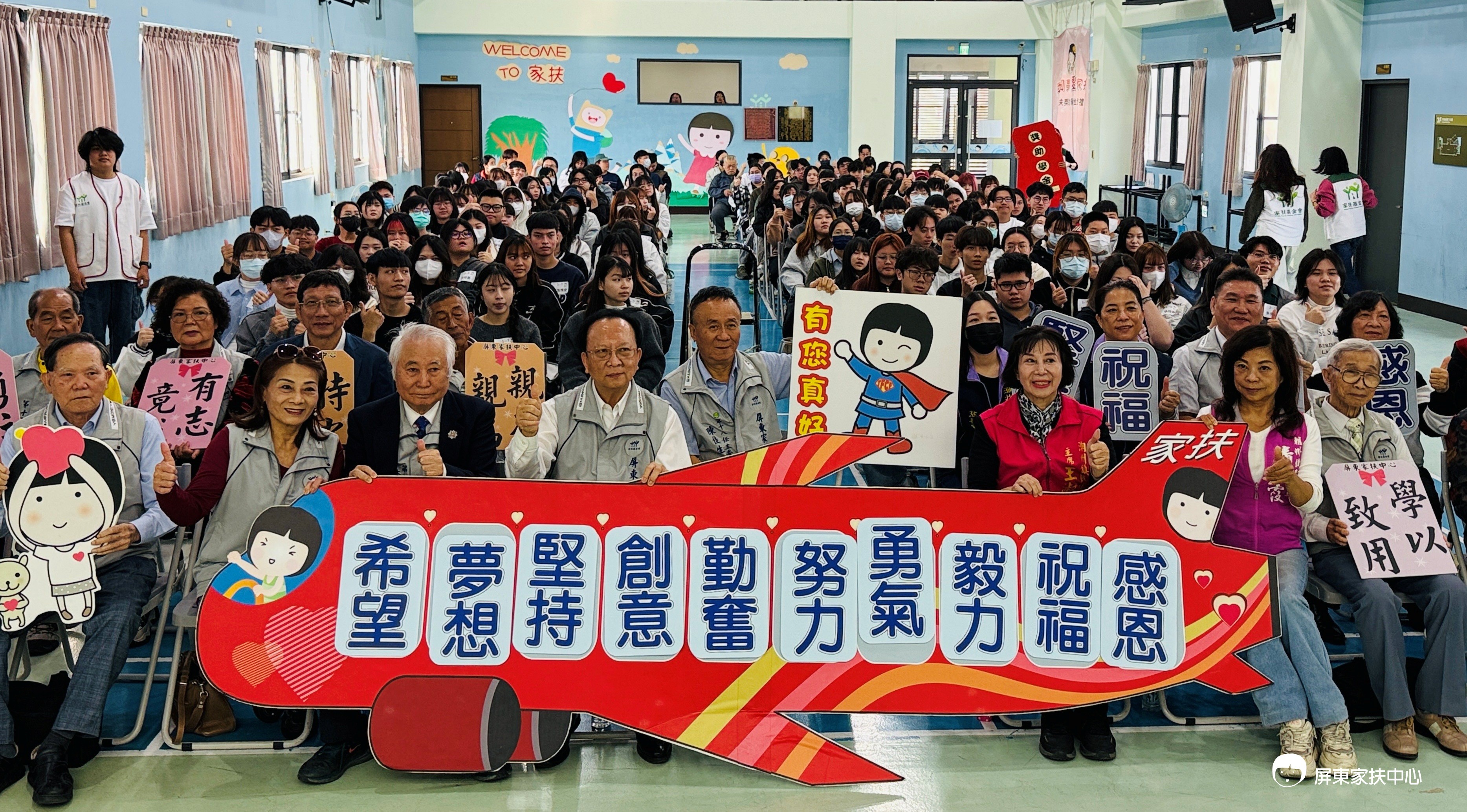 為鼓勵家扶兒少勇敢逐夢,屏東家扶中心今天(2/12)辦理「『助學圓夢 愛傳家扶』115年寒假獎助學金頒獎典禮」,本次以「夢想起飛」為主題,象徵以飛機啟航,陪伴家扶兒少飛向更寬廣的未來。透過祝福語化作一架乘載期盼的飛機,也象徵每一份獎助學金都是支持家扶兒少高飛的重要力量。