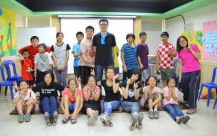 圖四:新北家扶與群英扶輪社志工於福山部落進行彩繪營,右一為新北市家扶督導林慈淑