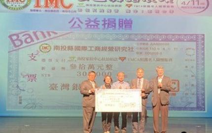 IMC南投縣國際工商經營研究社於4月11日假南投縣文化局舉辦一場公益舞蹈表演外,當日還將南投縣政府文化局長林榮森寫給南投家扶中心的墨寶「積極樂觀、追求卓越」以8萬元買下,並且熱情加碼補足...