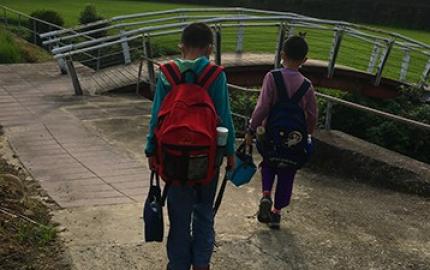 某天,小欣在玩耍中撿來很多石頭、磚頭與木板,將原本泥濘易濕滑的土地加工,建造一條安全穩定的路讓婆婆跟爺爺行走,才不會滑倒。
