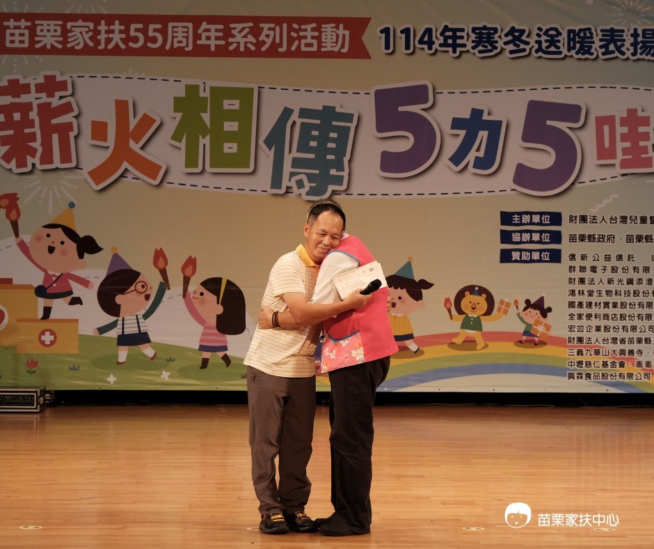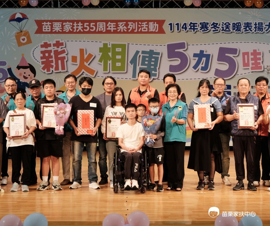 11月9日,苗栗家扶中心寒冬送暖表揚大會中,來自政府部門、企業團體、關懷扶幼的善心人士與志工伙伴齊聚一堂。回首苗栗家扶中心 55 年的歲月長廊,我們共同見證了這些年來各界齊心匯集而成的陣陣暖流,點亮了一盞名為「希望」的光芒,陪伴經濟弱勢家庭度過徬徨、無助,在逆境中逐步翻轉、重新站穩、再度出發。